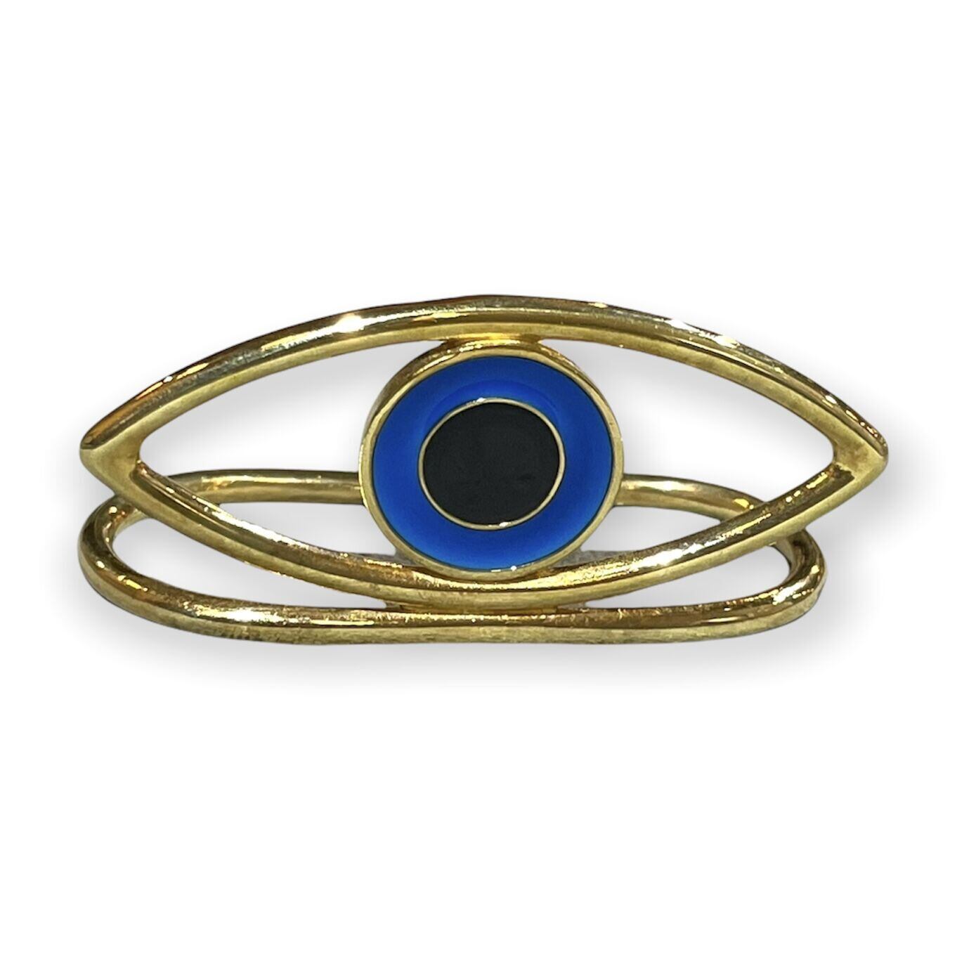 eye 3 finger ring - brass/blue